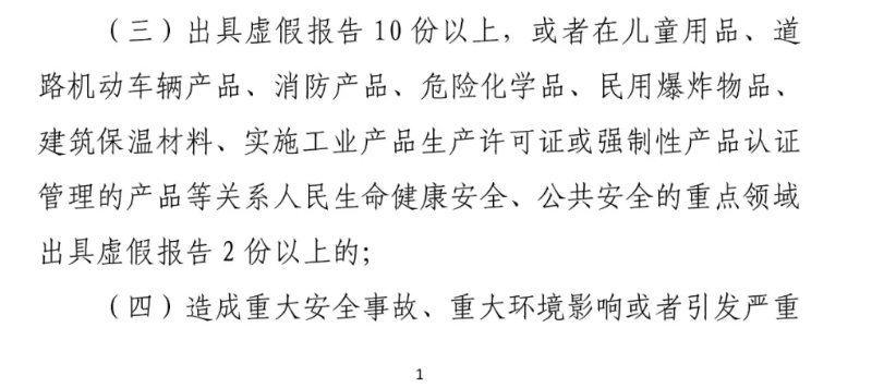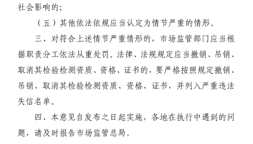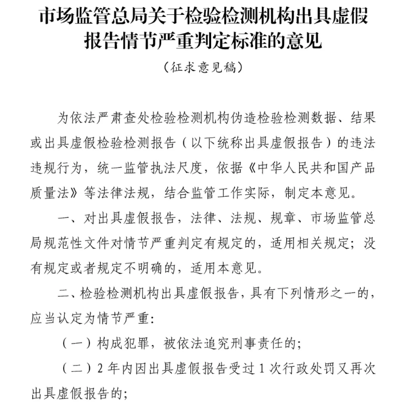 1.《关于检验检测机构出具虚假报告情节严重判定标准的意见(征求意见稿)》