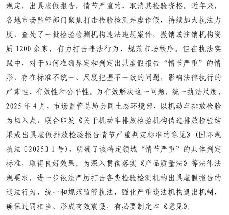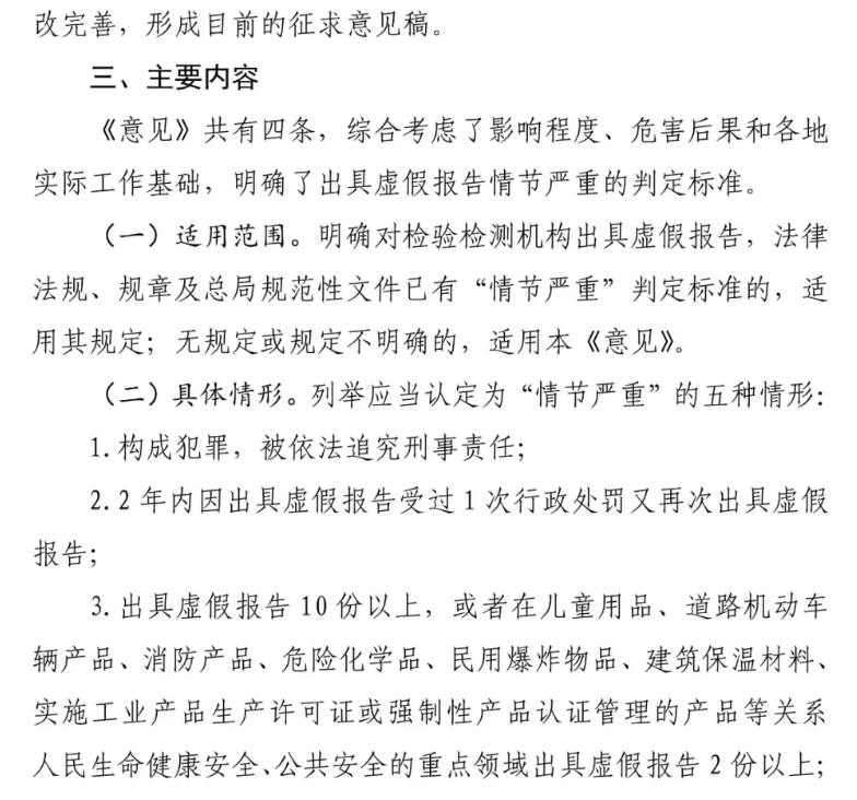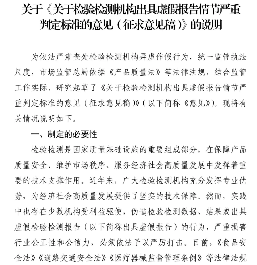 2.《关于检验检测机构出具虚假报告情节严重判定标准的意见(征求意见稿)》起草说明